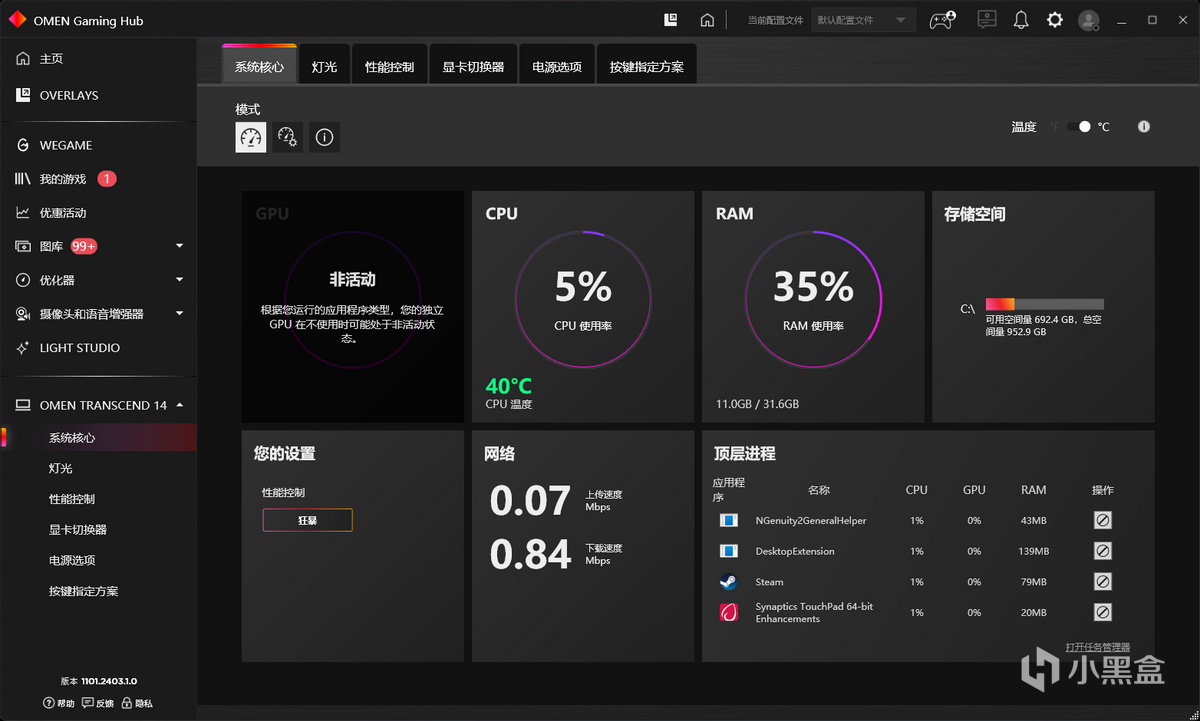 有趣的是暗影精灵10 SLIM 14的噪点控制非常理想。即使在暴力模式下,声音仍然平静而不刺耳,火力全开时笔记本前面的噪音仅为53dB,给人留下了良好的印象。