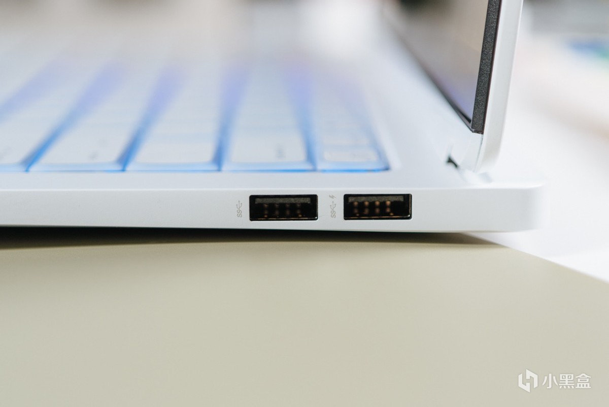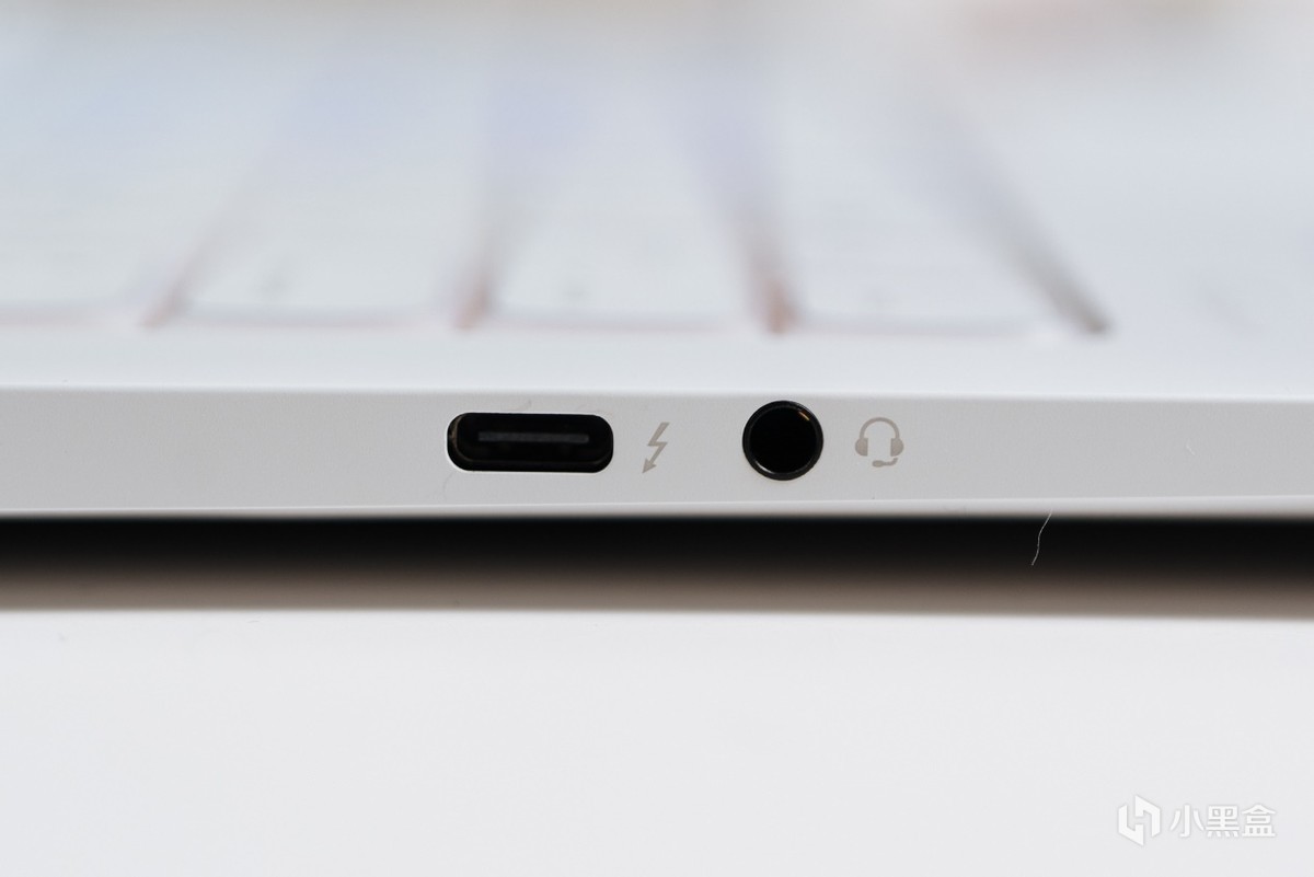 另一个值得注意的是暗影精灵10 SLIM 14的巧妙接口分布。如上所述,一个USB-C 3.2 Gen2接口和一个HDMI 2.1接口被巧妙地集成在笔记本的末端。同时笔记本采用USB-C接口的140W USB-PD 3.1充电协议,电源接口刚好插在笔记本后面,不影响左右两侧配件的摆放,这也是笔者相当喜欢的设计。