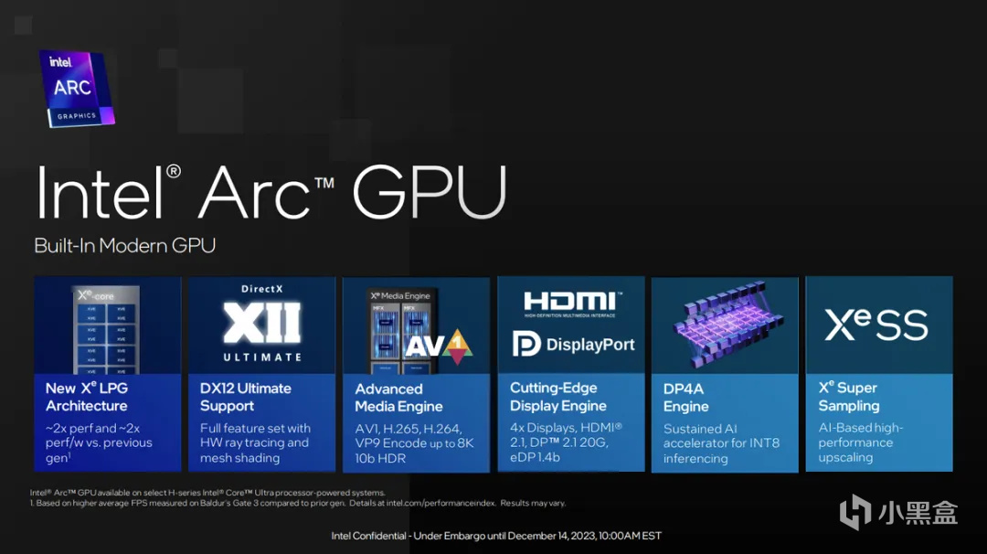 这只是其中之一。核显Xe-LPG是酷睿Ultra的又一次飞跃,酷睿Ultra也属于Arc GPU系统,对应的独立显示架构称为Xe-HPG。与采用Xe-LP架构的Iris Xe相比,每瓦性能提升了2倍。