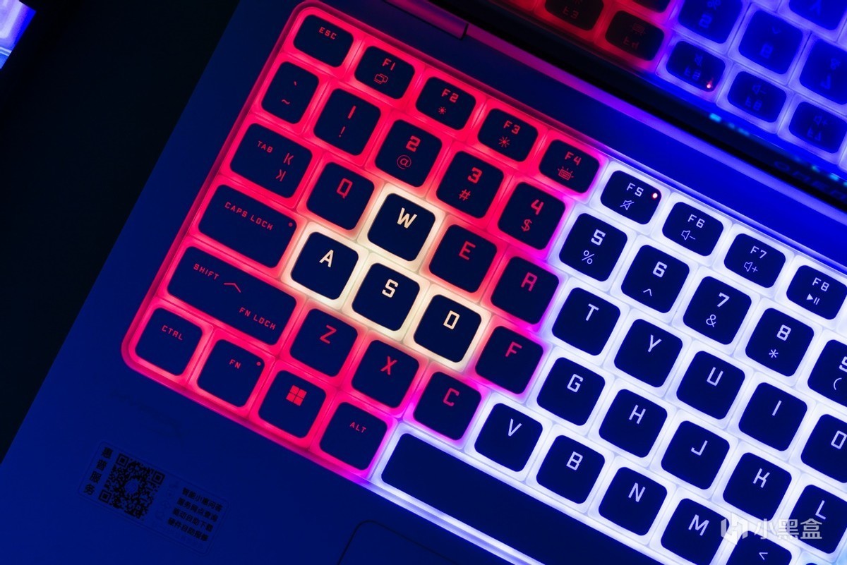 同时,这套RGB提供四区背光,其中ASDW单独设置为一个区域,并在OMEN Gaming Hub中独立调节。您可以根据自己的喜好调整不同区域的颜色。得益于半透明键帽的设计,无论每个区域的颜色如何选择,颜色之间的过渡都可以自然处理,因此键盘的整体RGB效果非常舒适。