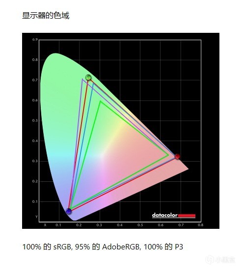 在实际测试中,我们可以看到色域已经完全覆盖了100% DCI-P3,平均色彩准确度△E为0.84。