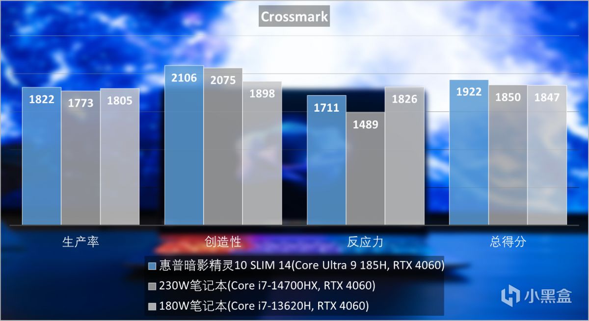 在WebXPRT 4中,我们可以看到暗影精灵10 SLIM 14在Web上的响应速度主要取决于CPU的性能,我们也可以看到Core Ultra 9 185H的战斗力不错。