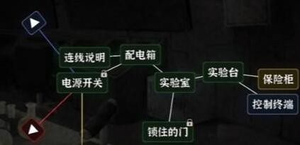 1。文字逃脱第三关实验雾先点击配电箱,再点击连接线,显示连接黄蓝红的线的方向就是电源开关的方向,如下图: