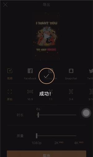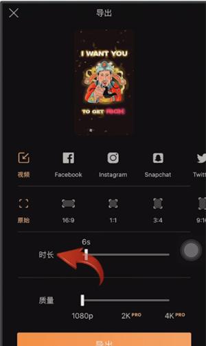 2。进入导出页面后,设置视频的时长、质量、画面比例;