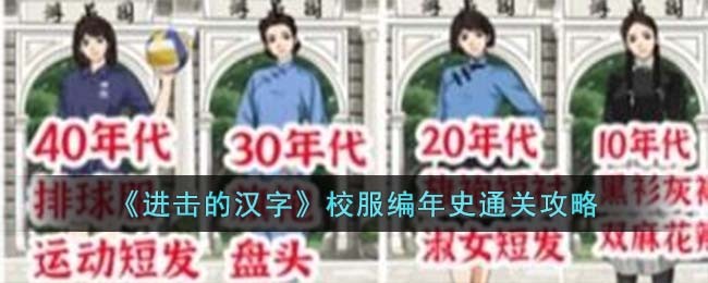 进击的汉字是一款非常有趣的休闲教育类手机游戏。还有很多汉字、拼图等游戏,任务挑战也非常丰富。下面轻轻松松宇宙最强编辑铺为大家带来游戏内校服编年史通关攻略。和感兴趣的朋友一起来看看吧,希望能有所帮助。